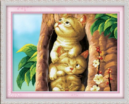 クロスステッチ刺繍キット 3D 樹穴の3匹猫 図柄印刷 | amazonで稼ぐための逸品