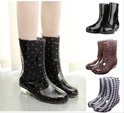 レインブーツ 長靴 レディース ショート 丈 ミドル 丈 (ドット柄ブラック/千鳥格子柄/ヒョウ | amazonで稼ぐための逸品