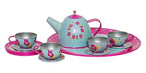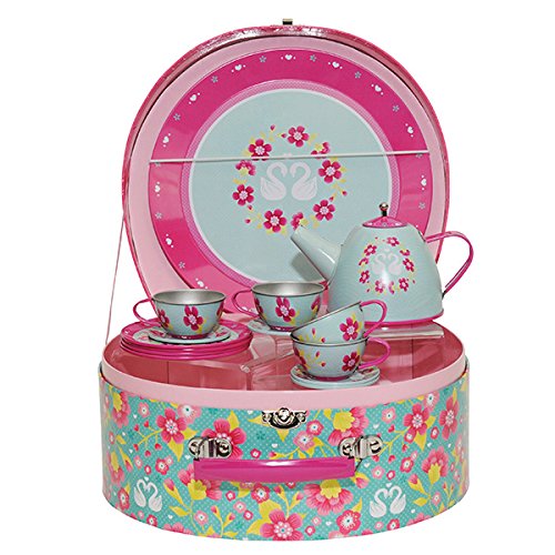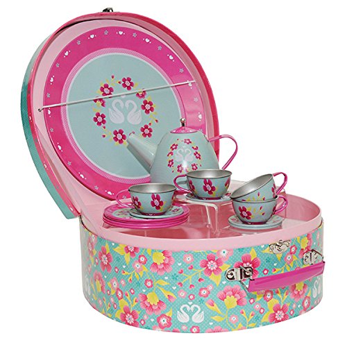 ラウンド状のスーツケースが可愛らしい印象のおままごと用ティーセットです。色鮮やかなお花柄が、お茶会を素敵に演出してくれます。ティーセットの素材はスズで出来たブリキなので、丈夫で壊れにくくなっているのでお子様にも安全に遊んでいただけます。 *製品の製造過程上、パーツどうしの接触等により多少のキズがございますが、本品は日本国内にて食品衛生法の玩具基準の検査を実施し、その安全性を確認しておりますので、ご安心してご使用頂けます。 *本品は玩具インテリア雑貨としてご使用下さい。ケガや事故の原因となりますので、実際の調理や飲食には絶対にご使用なさらぬようお願い申し上げます。