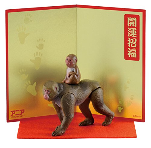 手のひらサイズで楽しく遊べる動物フィギュア『アニア』から、2016年の干支仕様の「ニホンザル」が登場! 2016年の干支は申!! 干支にちなんでサルの親子のフィギュアが登場です。親サルの両手両足が可動します。 ディスプレイ用の金の屏風と赤い不織布シートが付いています。お年賀などのギフトにも最適です。 [セット内容]フィギュア:ニホンザル(親)(1), フィギュア:ニホンザル(子)(1), 屏風(1), 敷物(フェルト)(1)