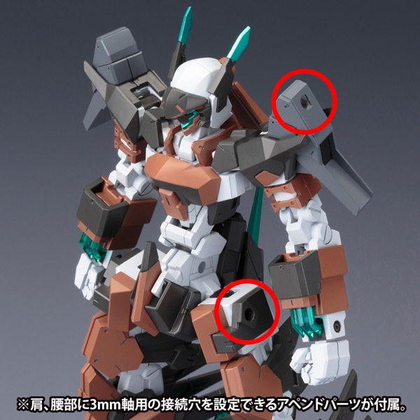 ・肩、腰部に3mm軸用の接続穴を設定できるアペンドパーツが付属。