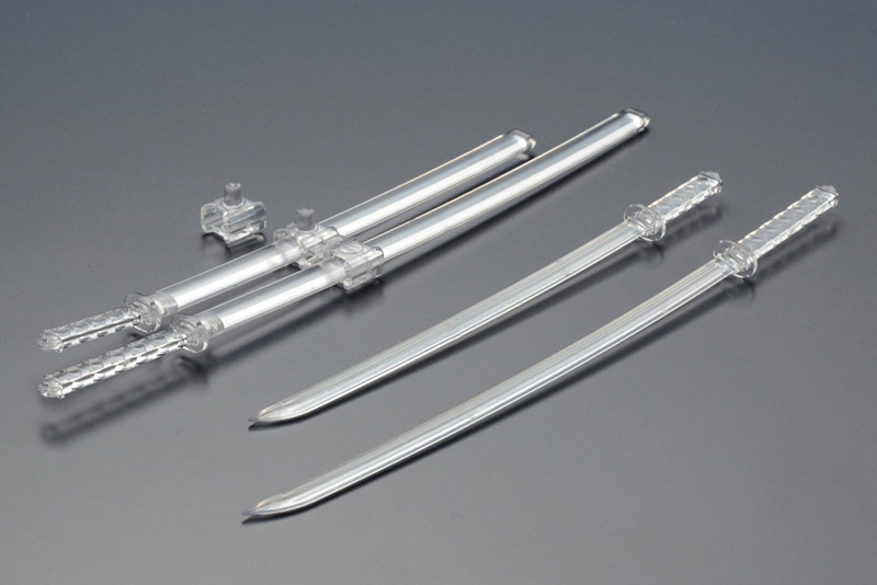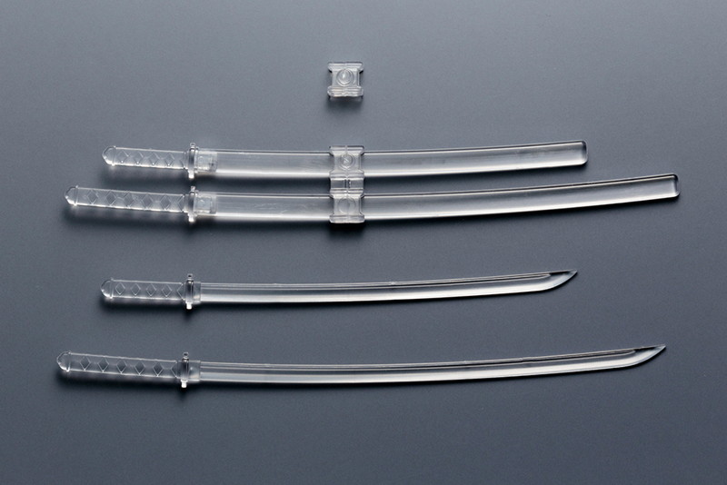 クリアーカラーで成型されているので刀身をクリアーレッドなどで塗装することにより‘妖刀’の様なイメージでご使用頂けます。