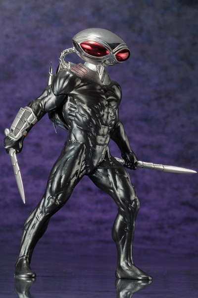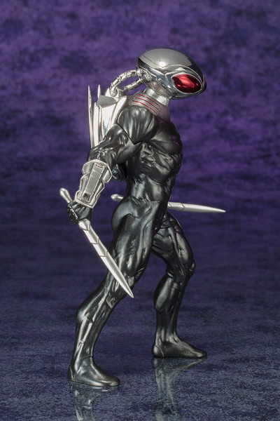 トレジャーハンターや傭兵としても活躍する無慈悲な彼を、アクアマンの前に立ちはだかる強敵として、彼の二本のダガーを構えたミュージアムスタイルのポージングで立体化。