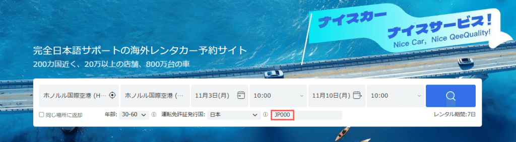 予約時にプロモーションコード 「JP000」 を入力すると、他の割引に加えて追加5%OFF!