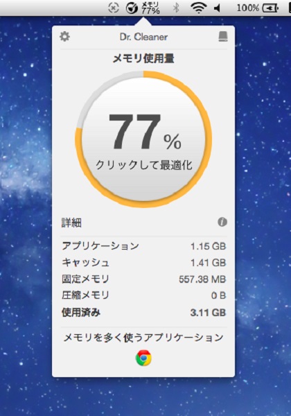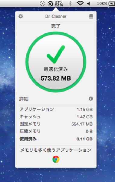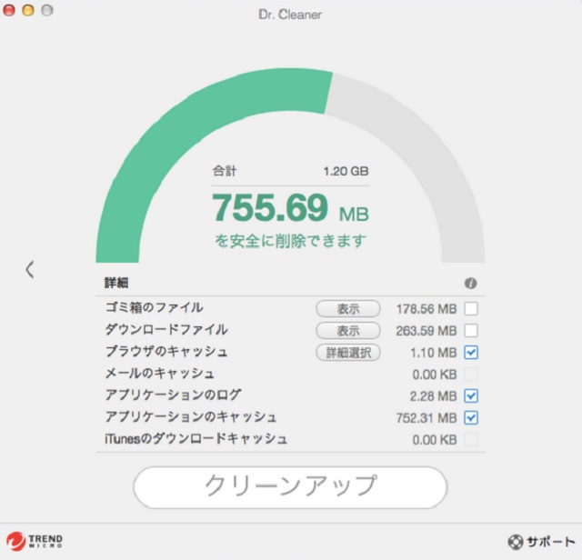 もし仮に「ギクッ!?」とした方がいたならば、トレンドマイクロが2015年2月10日に日本語版をリリースしたシステム最適化ツール『Dr. Cleaner』を試してみてはいかがでしょうか。不要ファイルを削除してディスクの空き容量を増やす「ディスククリーン」と、1クリックでメモリを最適化する機能があり、『Mac App Store』にて無料で提供されています。