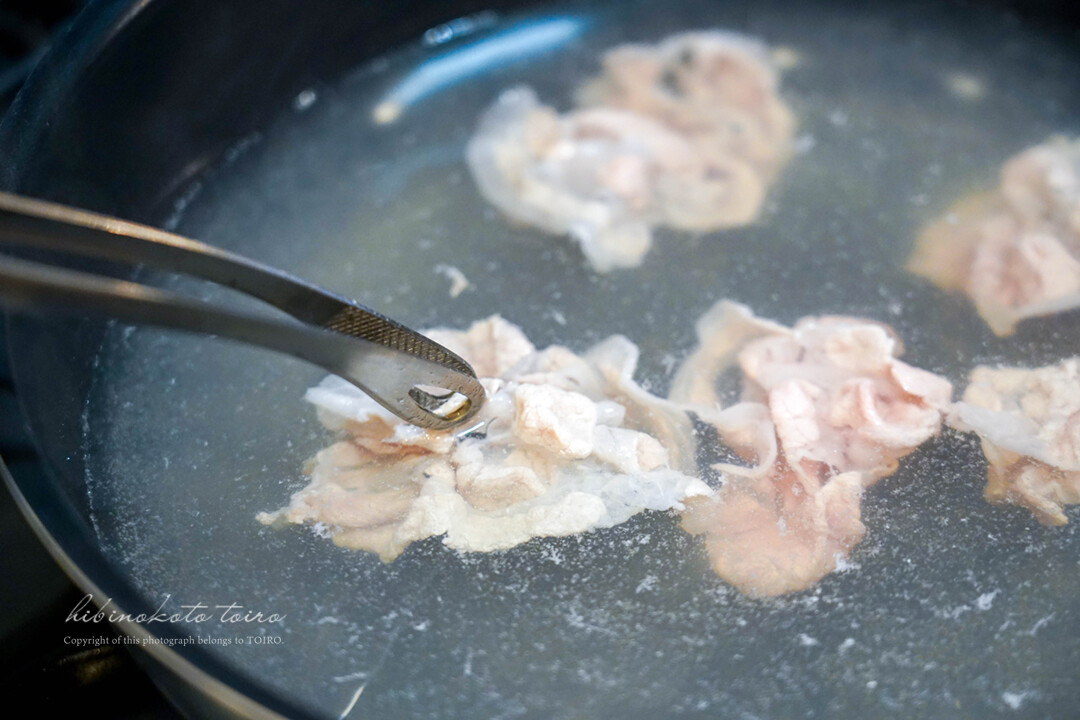 豚しゃぶはサラダにする際や、こういう冷たい麺にトッピングする際、柔らかく茹でたいですよね。