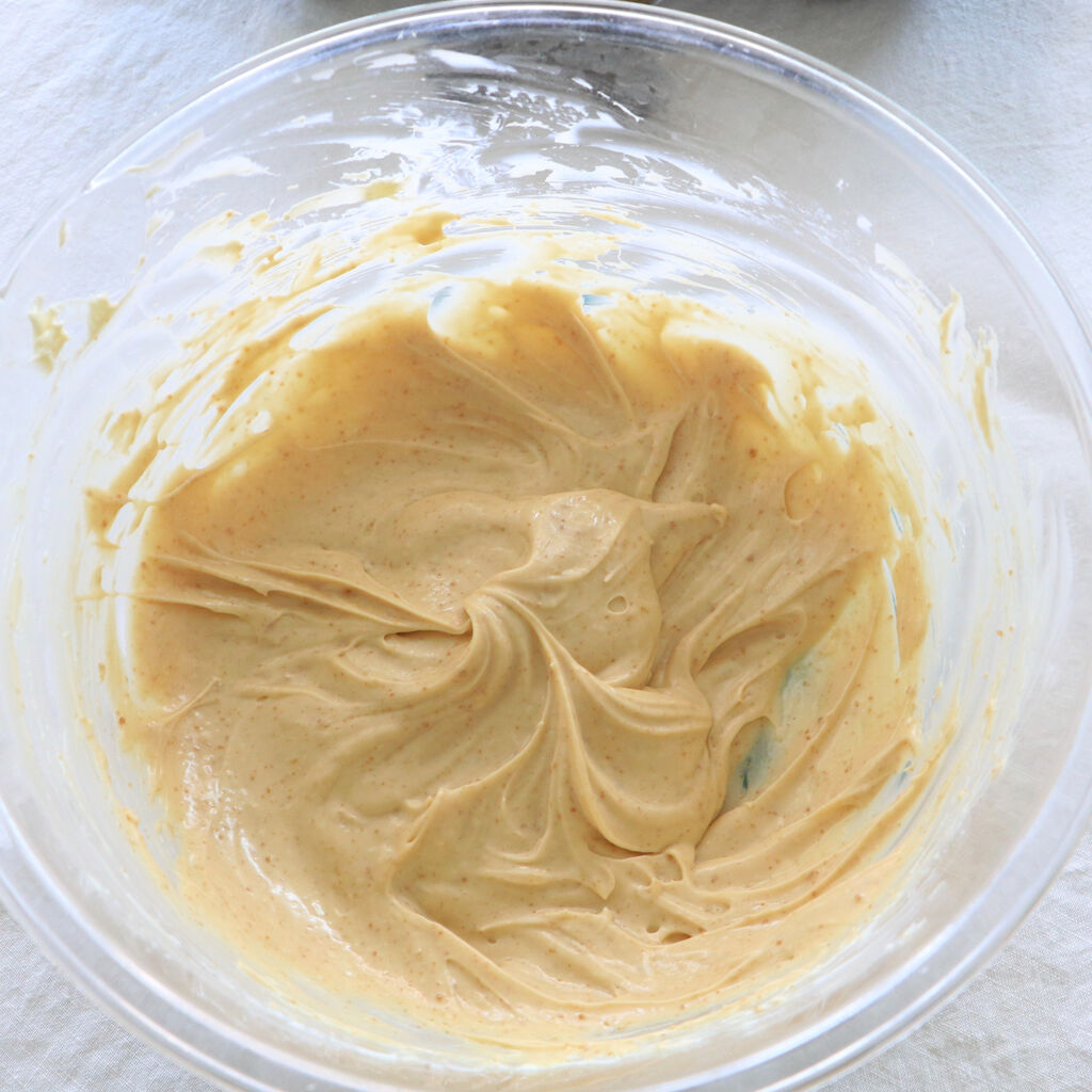 きび砂糖、卵を順に加えてよく混ぜ合わせる