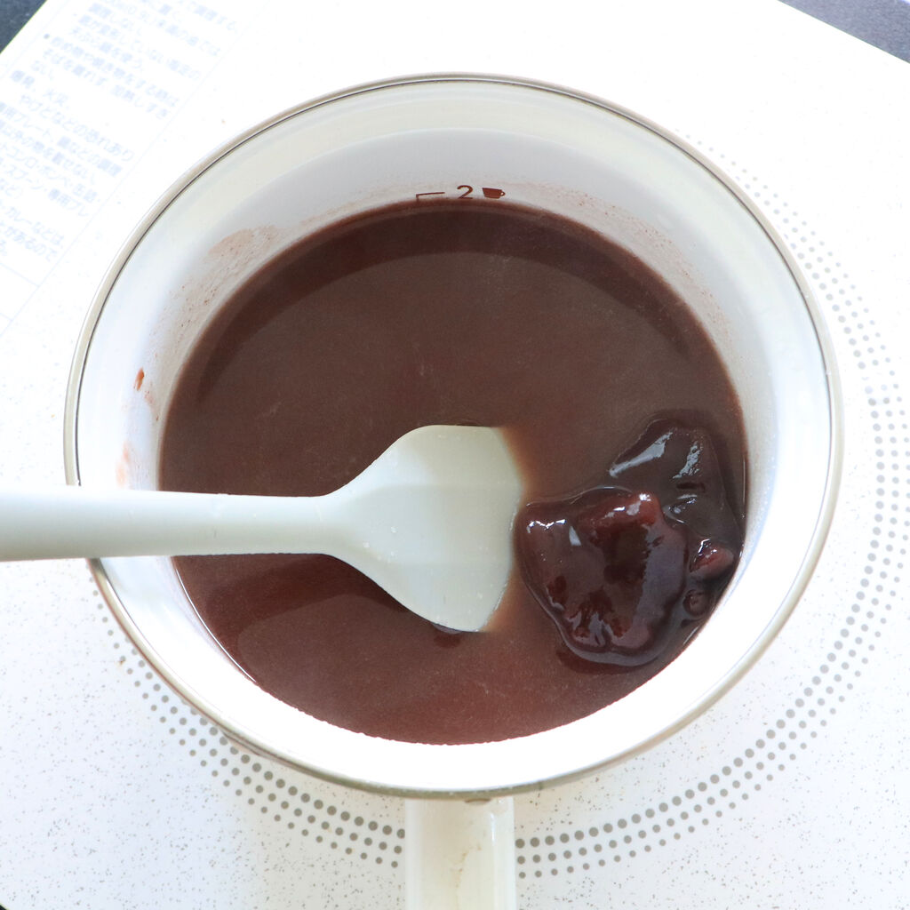 餡を入れてしっかり溶かしたら、塩を入れてさらに混ぜ合わせる。