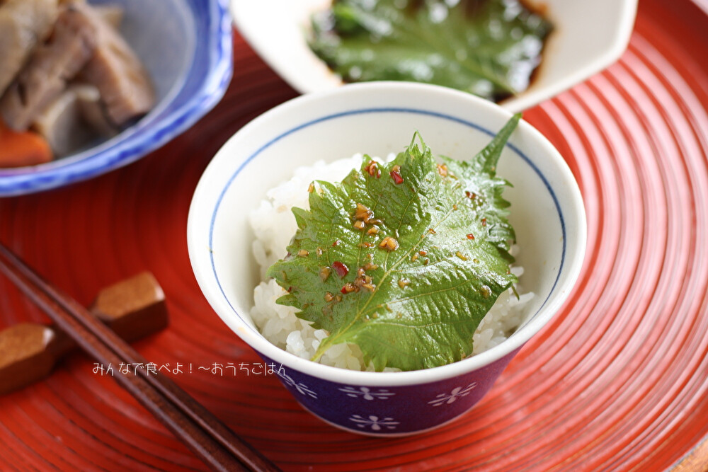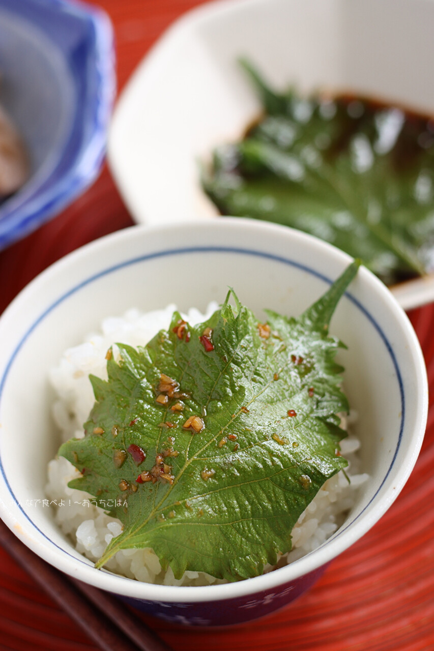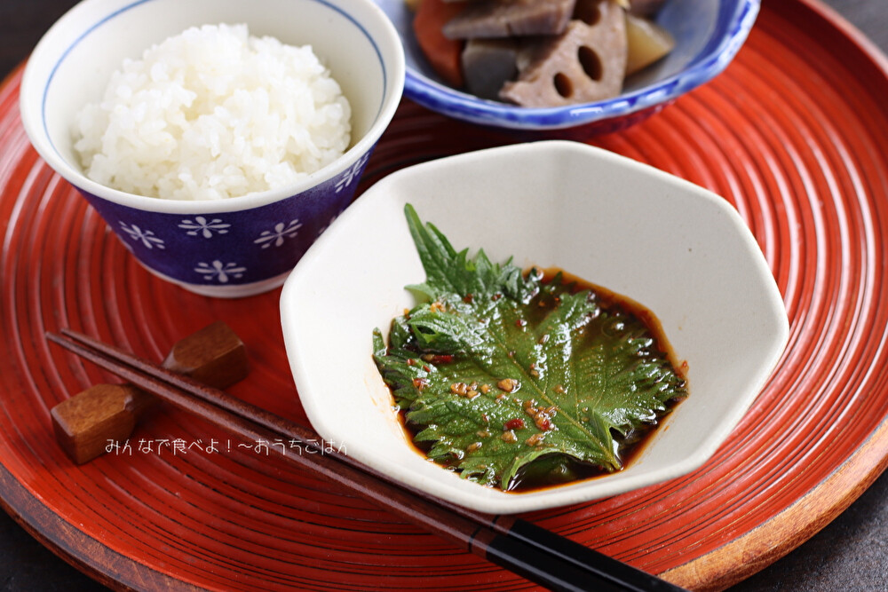 ピリ辛のタレで大葉を漬けてご飯のお供にしましたよ!