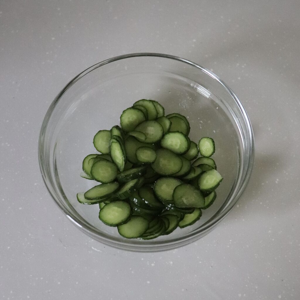 ① きゅうりは小口切りにし、塩揉みして5分ほど置く。