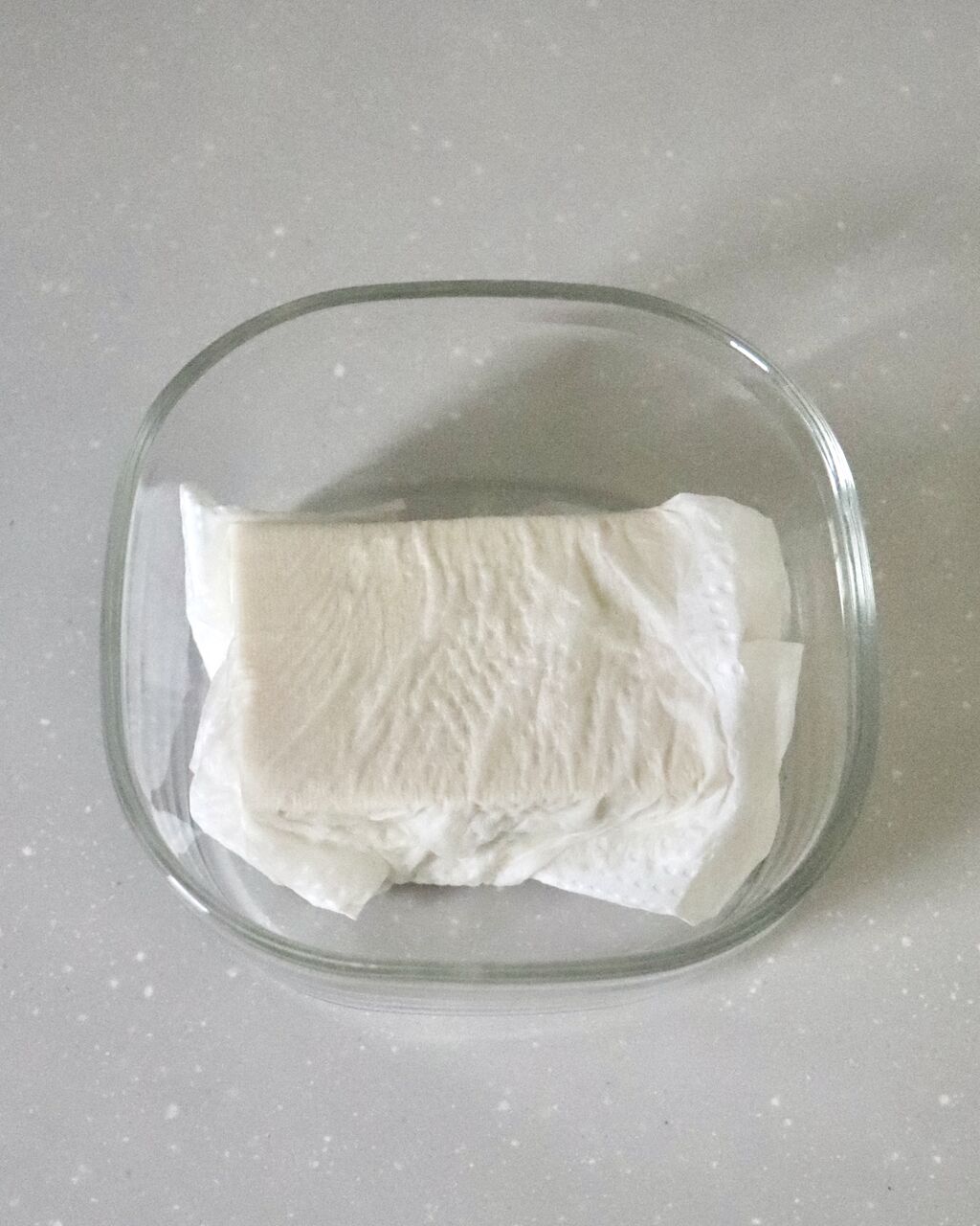 木綿豆腐はペーパータオルで包んで耐熱容器に入れ、レンジ600w2分加熱する。