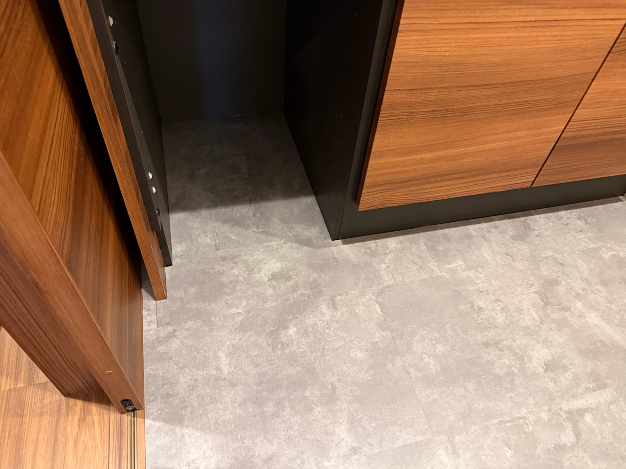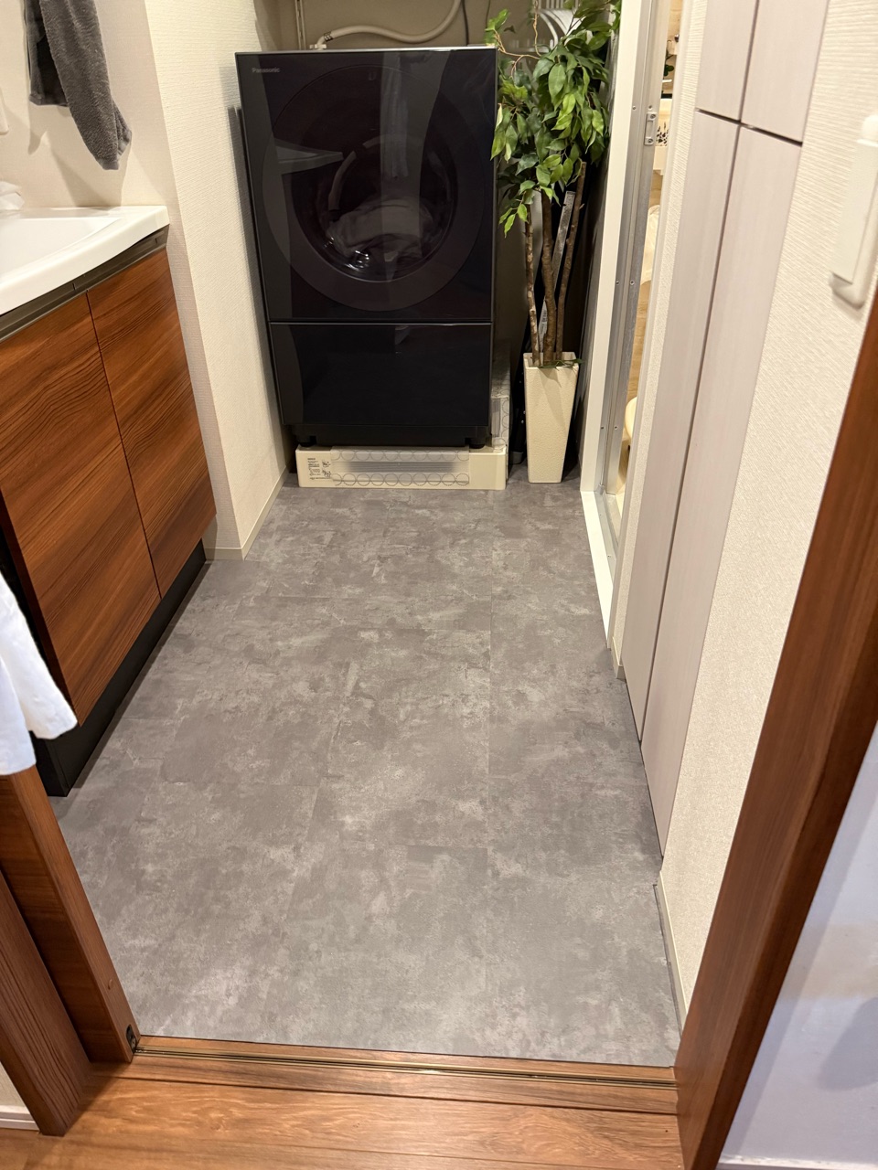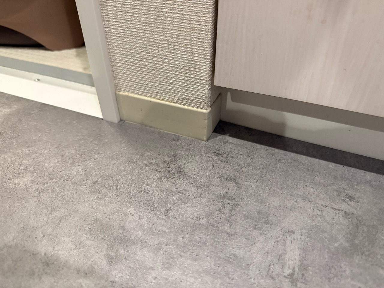 ベージュっぽい床が元々のところで、グレーに張り替えました。