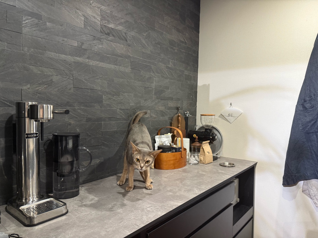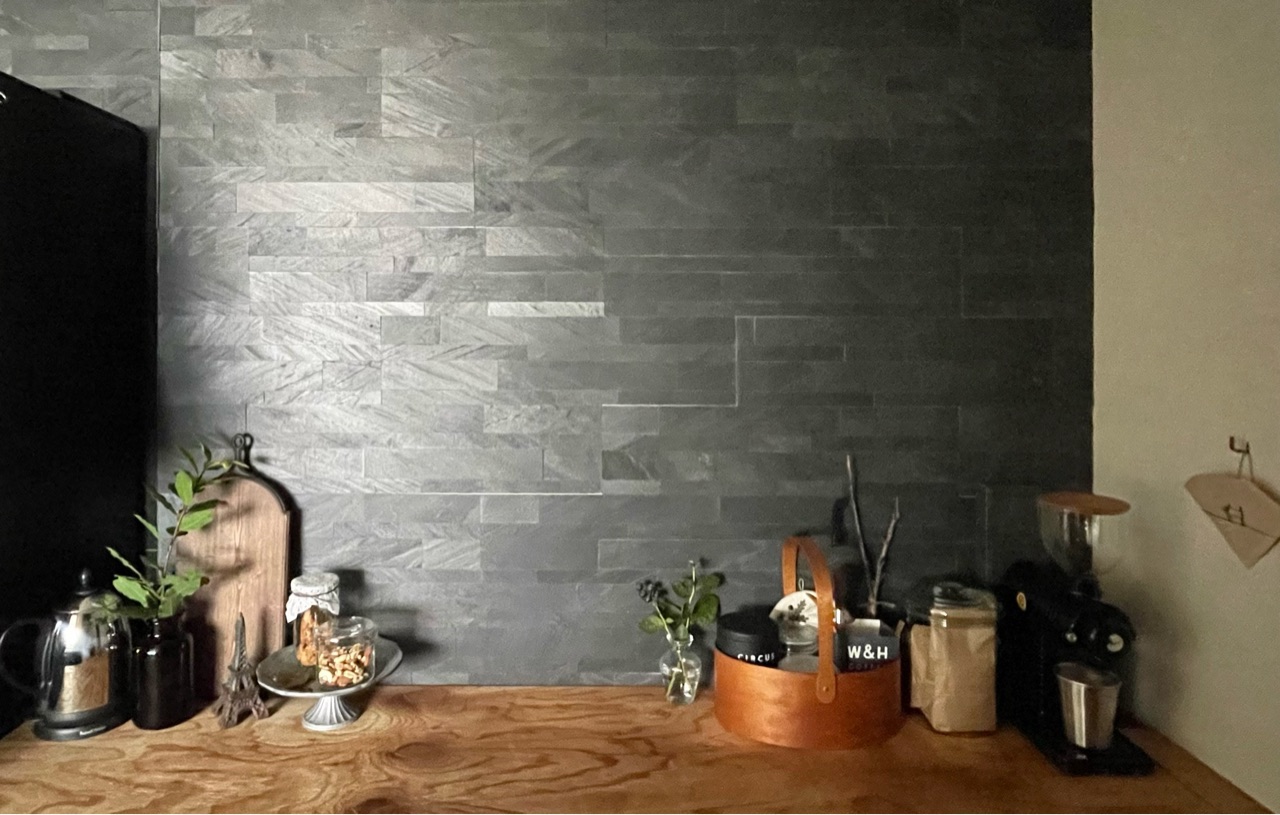 残ったフロアタイルをキッチンカウンターに置いてみたら、ちょうどいい感じに使い切れた✨