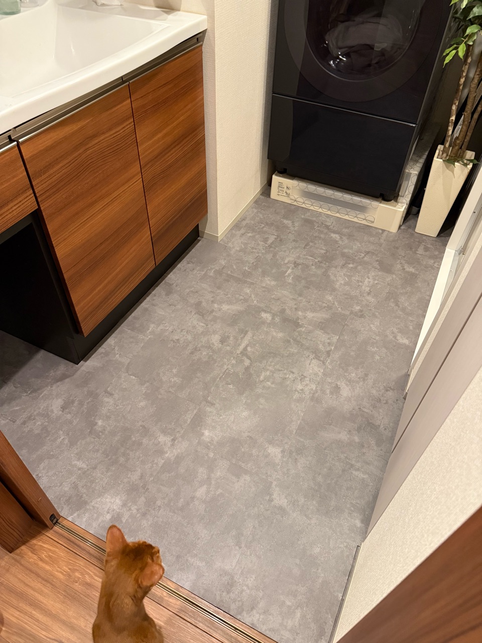 コンクリートのような質感で、硬くて猫の爪も引っかからないし、サラサラとして踏み心地も良くて素足で歩くのが快適になりました✨