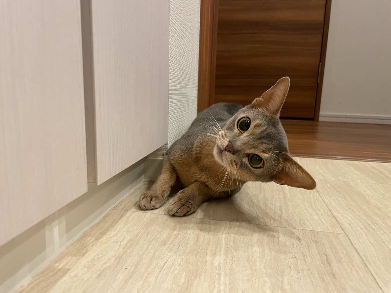 こんな風にして遊ぶし、トイレの後にガリガリと床をかくので、だんだんボロッとなってきました。