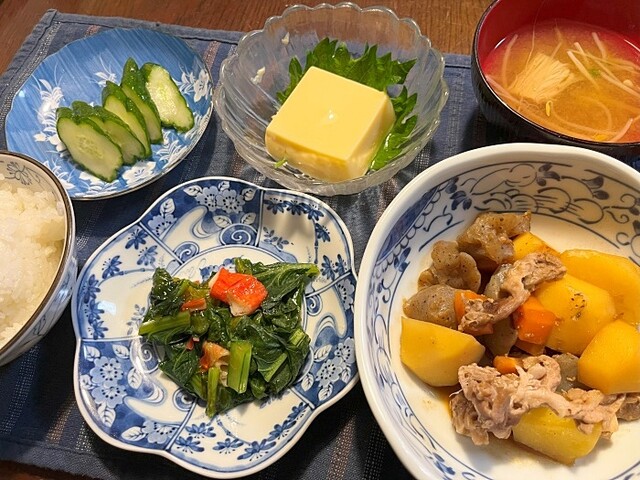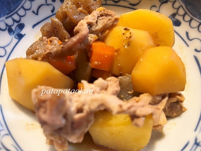昨日は特売ジャガイモと豚肉で味噌煮。
