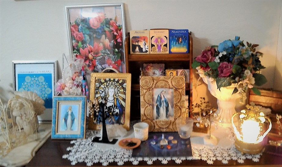 女神やマリア様などの写真を飾るだけ