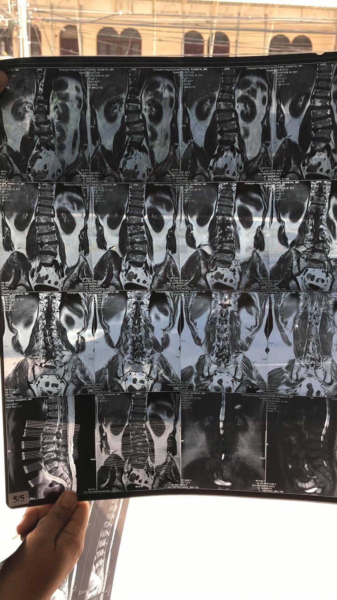 T11・12は椎骨が骨折していて椎体の前が潰れている