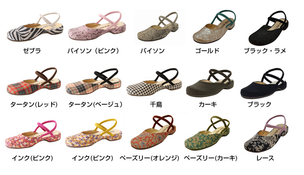 「ゼブラ、パイソン(ピンク)、パイソン、ゴールド、ブラックラメ、タータン(レッド)、タータン、千鳥、カーキ、ブラック、インク(ピンク)、インク(イエロー)、ペーズリー(オレンジ)、ペーズリー(カーキ)、レース 」