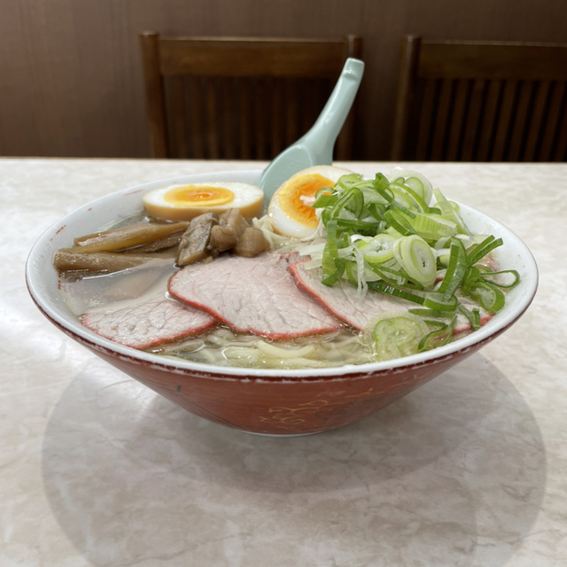 赤いモモチャーシューは3枚、程よい歯応え![]()