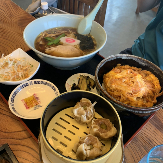 この日は木曜日、ハーフラーメン・ミニカツ丼・シュウマイ・大根サラダ・漬物でBランチ![]()