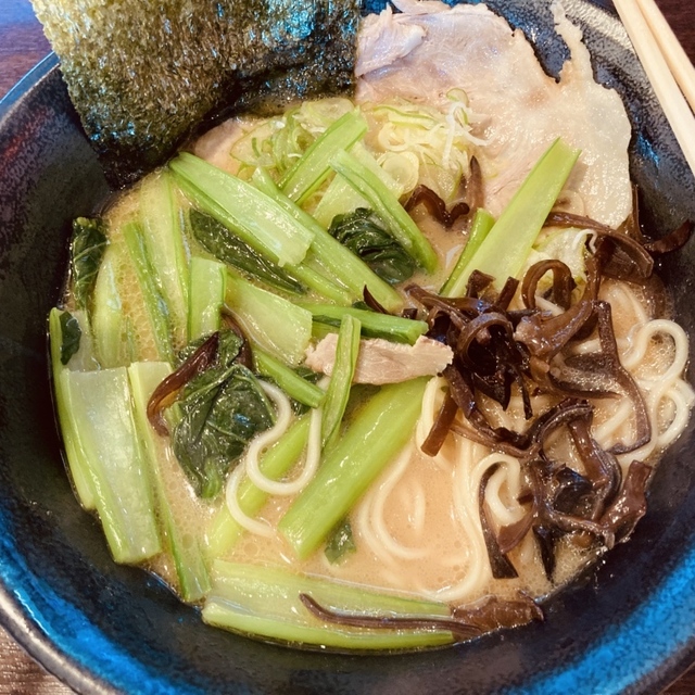 具材は、チャーシュー・小松菜・刻みキクラゲ・のり・ねぎ、です。