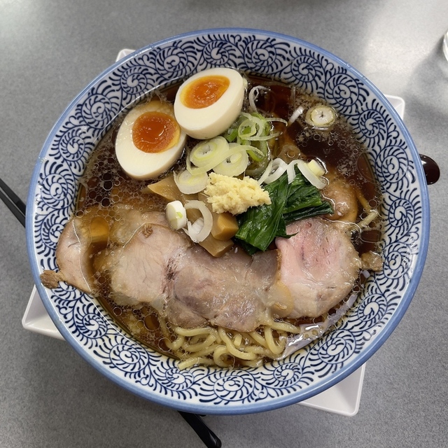 具材は、チャーシュー・太角メンマ・ほうれん草・ねぎ・おろし生姜、です。