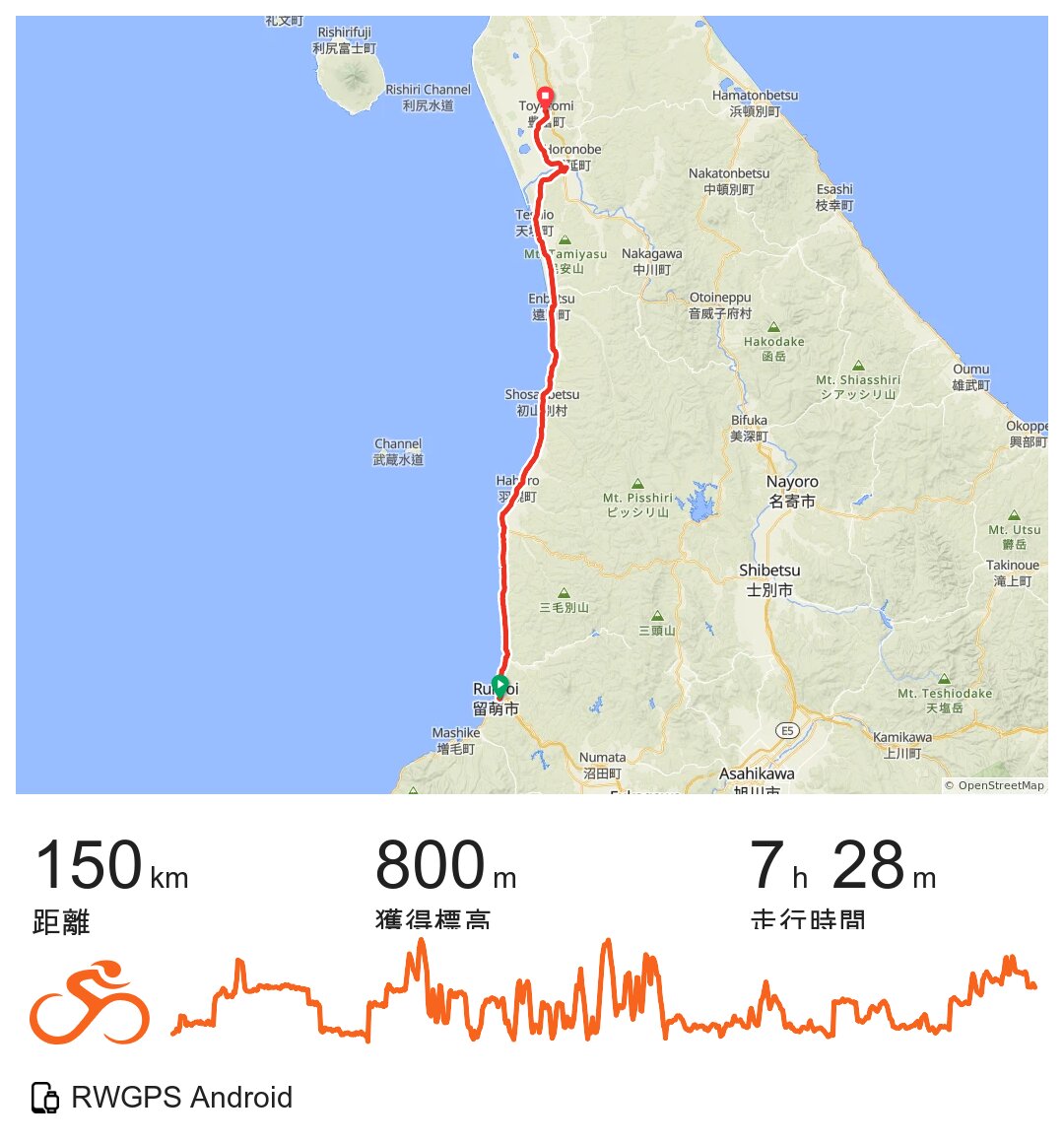 180㎞~200㎞/日と考えていたが、修正が必要だった。自分の脚力では160㎞程度が妥当だった。後半、疲労が残らなくなった頃、180~200㎞でも十分可能な感じだったが、17時ころにホテルに入りお風呂で汗を流す時間割が大変気に入ってしまい、むやみに距離を延ばすことは考えないことにした。
