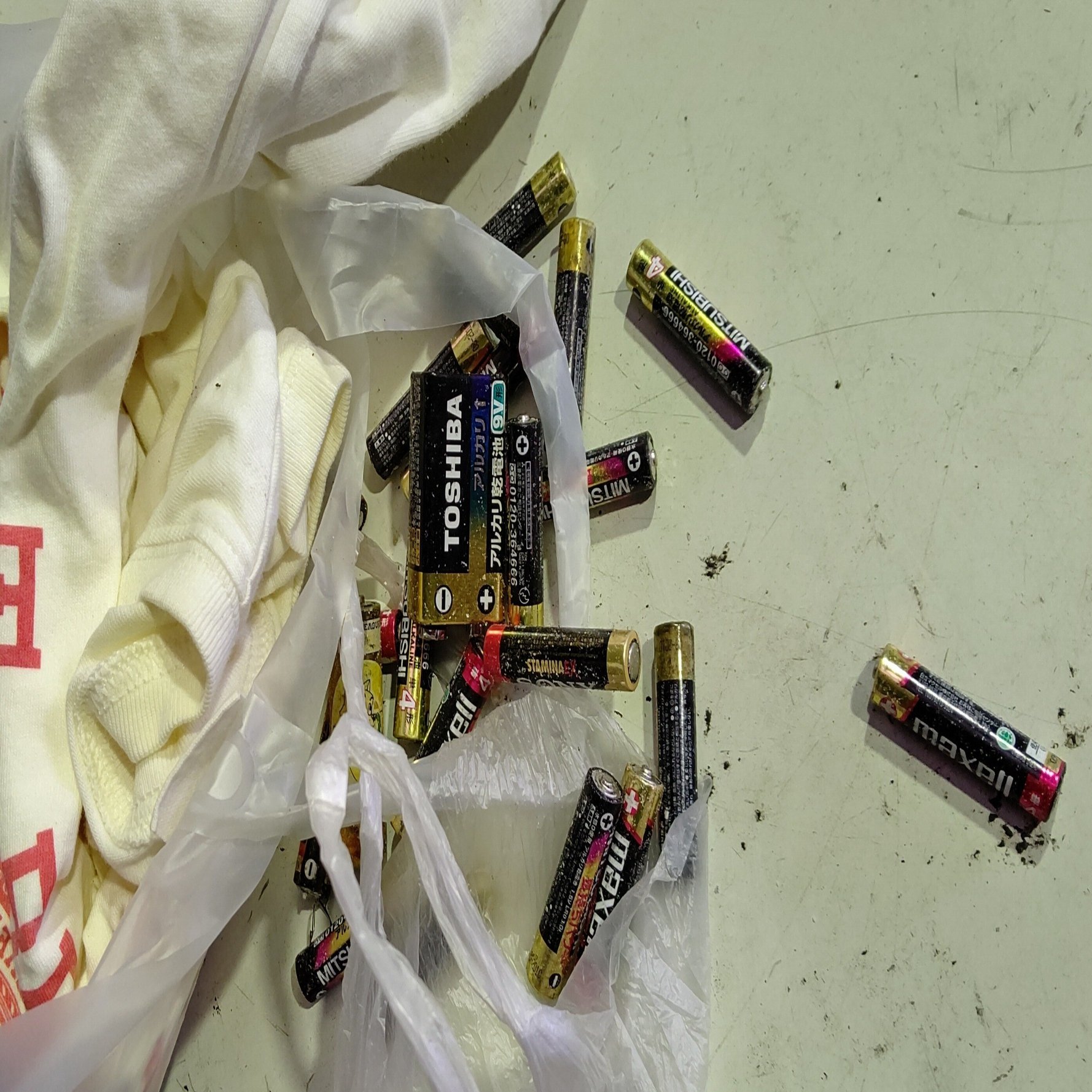 こうやって溜め置きしていた乾電池を、古着の中に隠して捨てる人がかなりの数でいるんです🤬