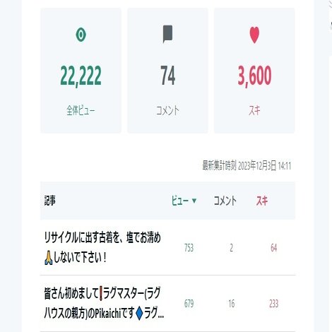 noteを初めて2年が経ちますが、なんと全期間のアクセス状況で全体ビューが22222回目のぞろ目で揃いました🎉