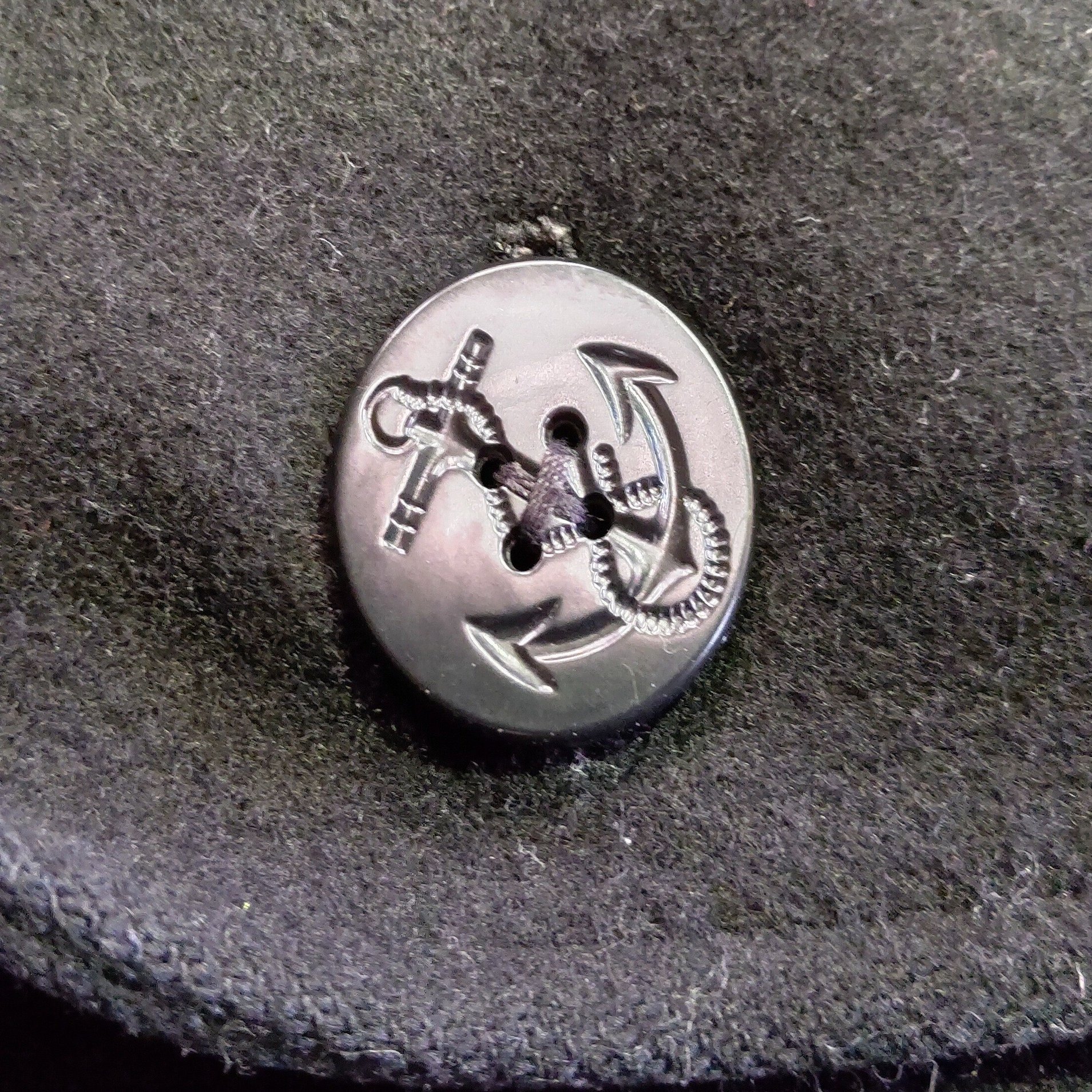 ⚓️アンカーマーク釦10個、裏地は中ワタ入りのキルティング、色はネイビーブルーでトラディショナルなコートだ。