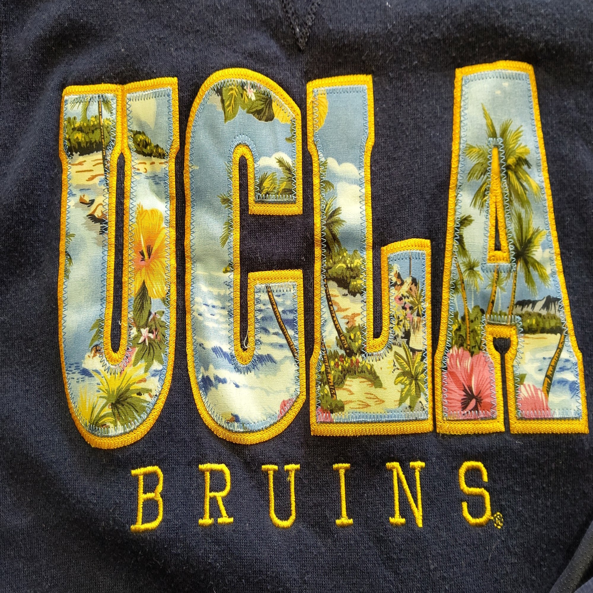 UCLAのカレッジロゴが西海岸🌈🏖⛵🌺をイメージしたようなデザインのパッチワークでお洒落だ。