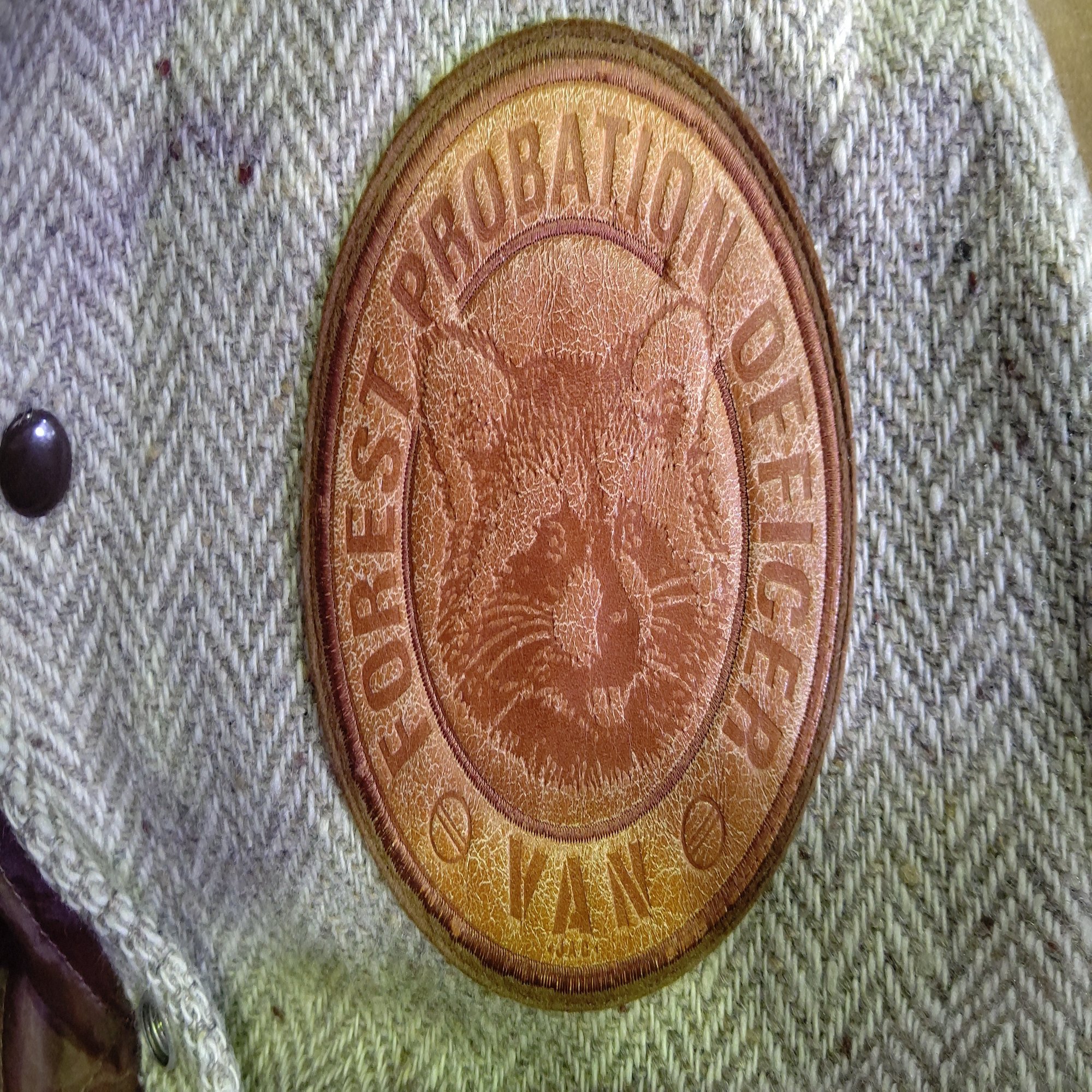 左胸の革ワッペンにはFOREST PROBATION OFFICER(森林保護観察官)のロゴとアライグマの顔が入っています。