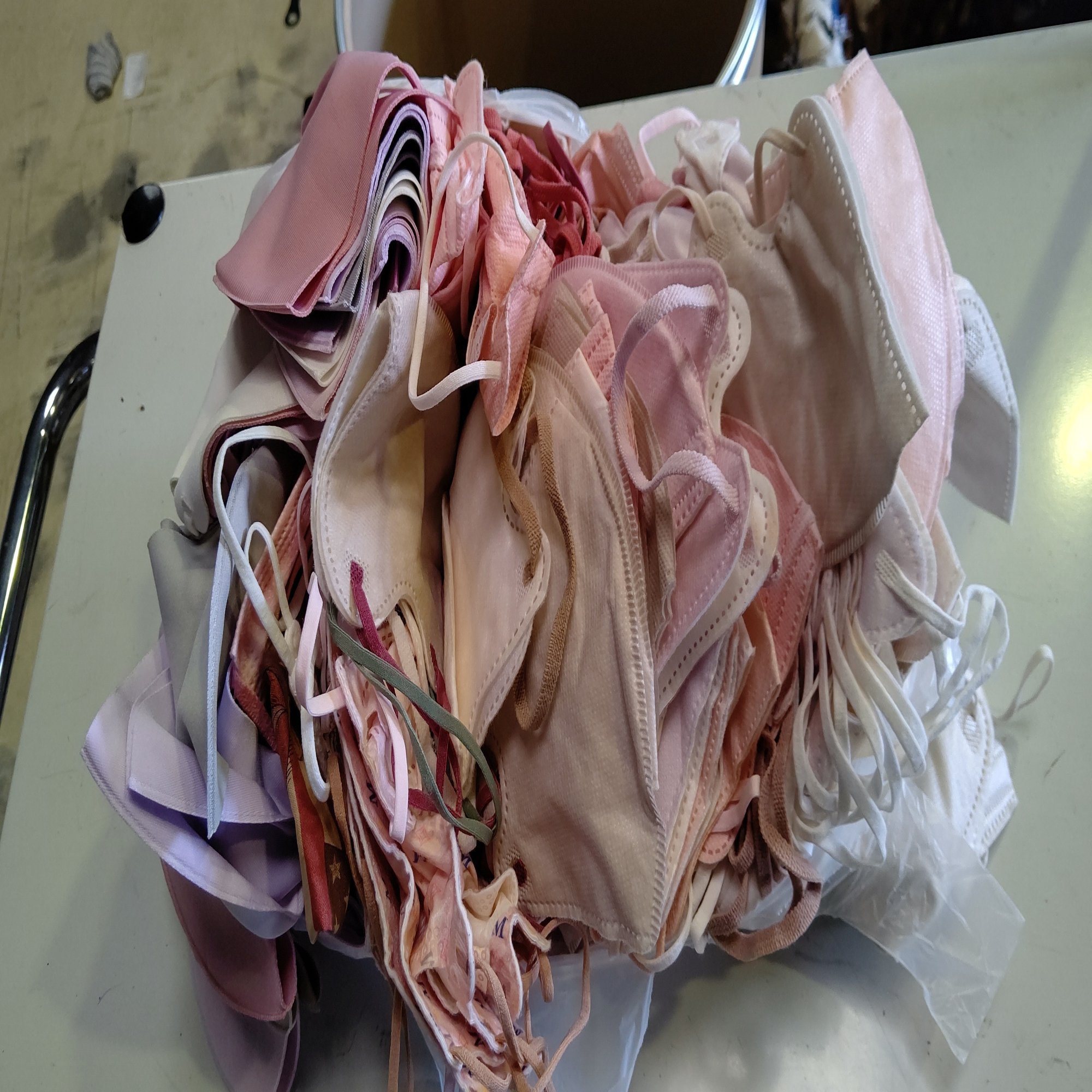 環境省のHPでは、使用済みのマスクは感染リスクが有るので、ゴミとして処分するようにとPDFを作成しています!また、マスクは布、不織布を問わずリサイクル出来ませんので、古着のリサイクルには混入させないで下さい。