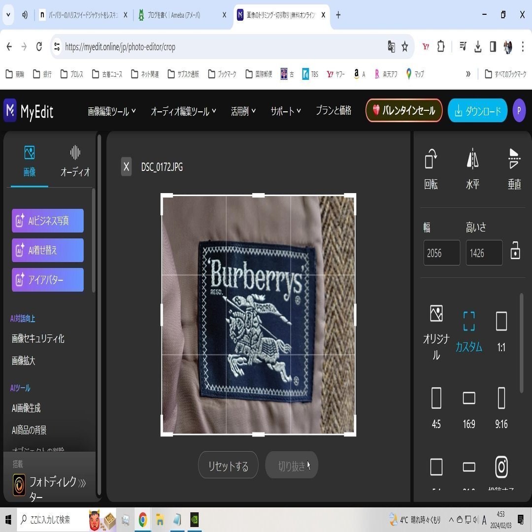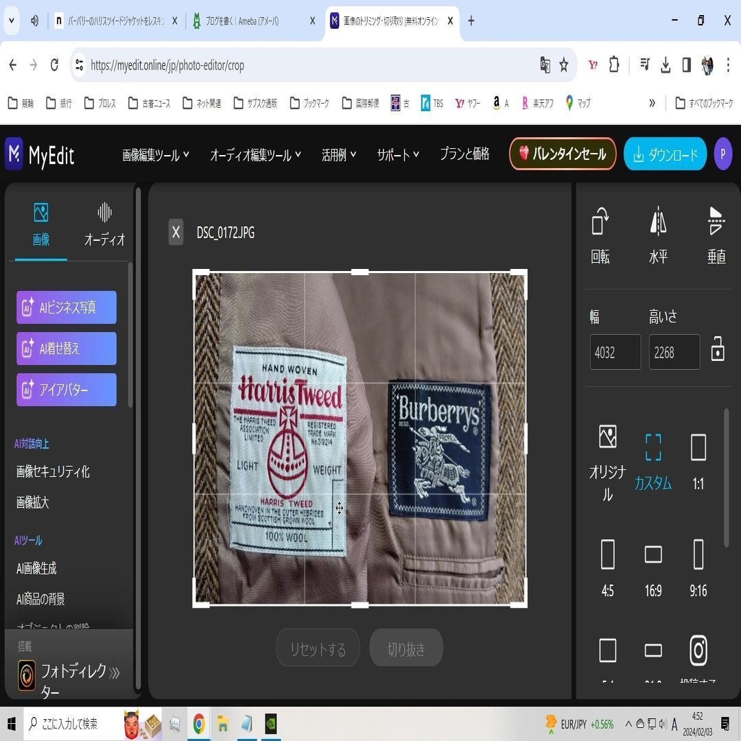 切り抜きボタンをクリックすれば、ダウウンロードフォルダに置換。