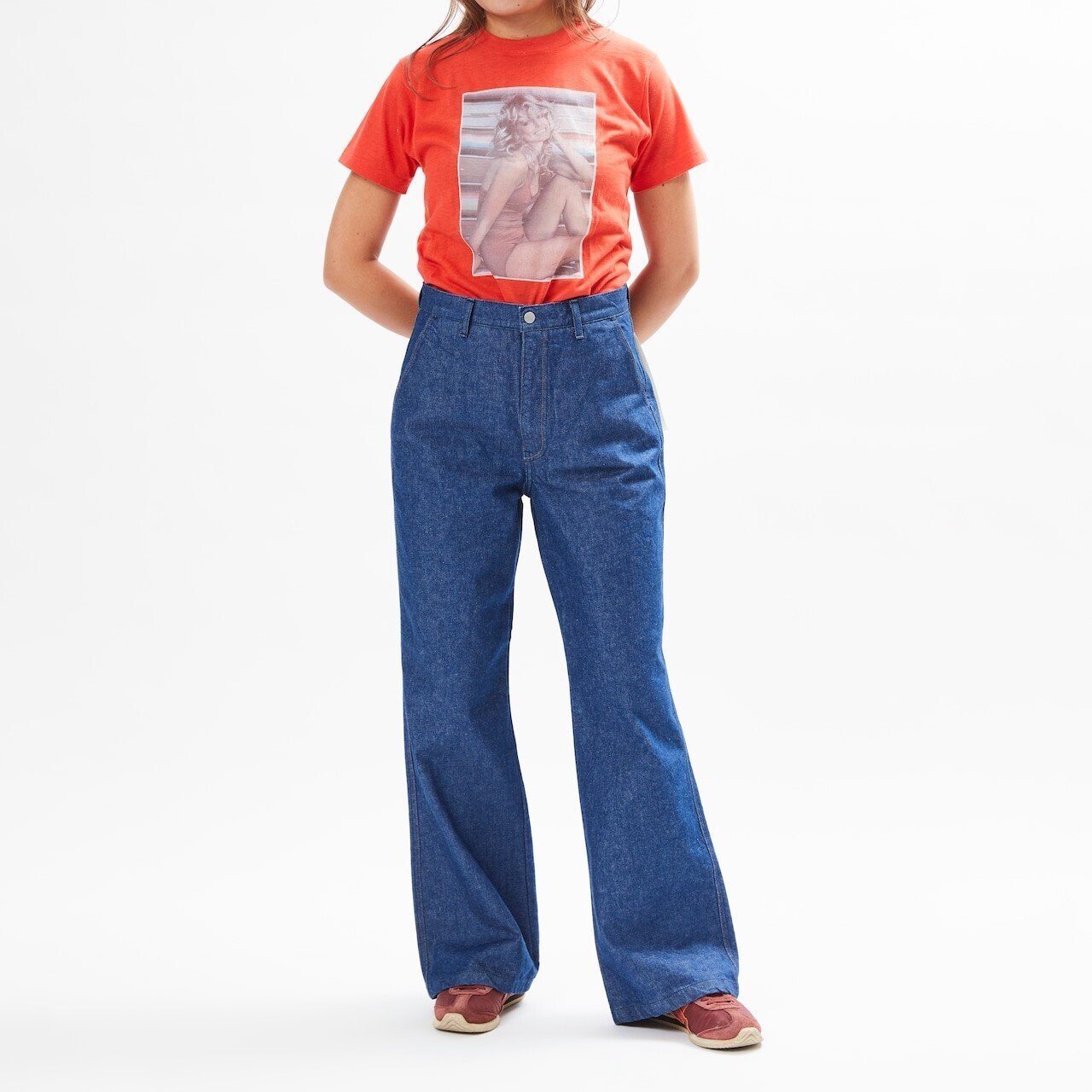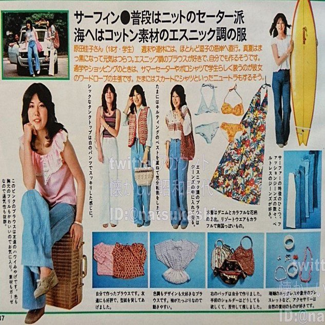 日本でも70年代後半から80年代初期に🏄♂️サーファーブームが有った。そのサーファー達に御用達だったのが、画像のようなハイウエストでヨーロピアンのバギーパンツのようなフレアパンツだ。この他にも、😇エンジェルフライトと言うニットパンツも大流行していた。