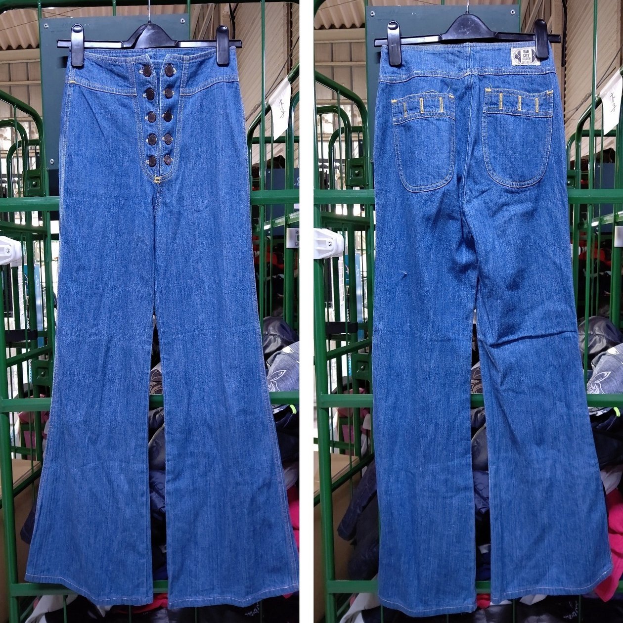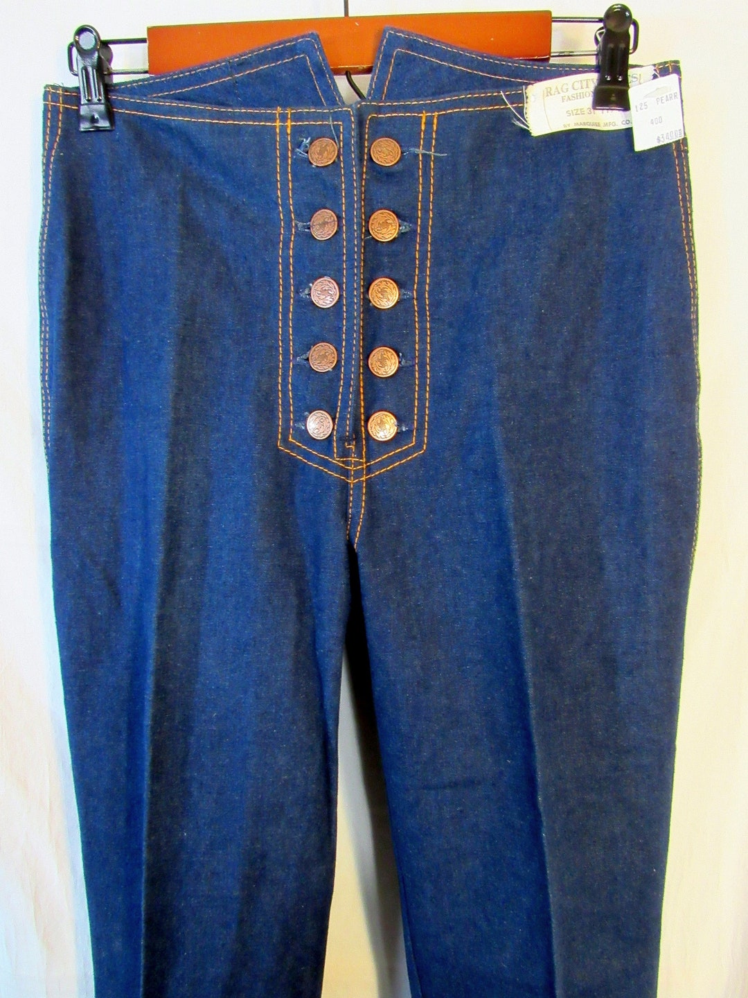 Etsyのサイトで同じ様なジーンズを見つけた。『1980年代ヴィンテージラグシティブルースオブLA、ダブルボタンスルーフライ、ハイウエストブルーデニムジーンズ』(下記サイトの翻訳)。