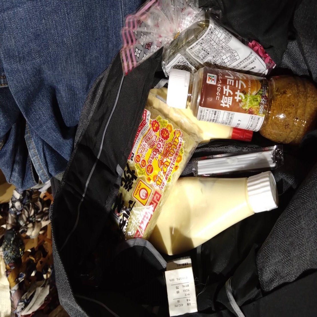 この袋には醤油のペットボトルが入っていたが、キャップが外れて液漏れし古着もリサイクル不能で、フードロス&ファッションロスだ🤬