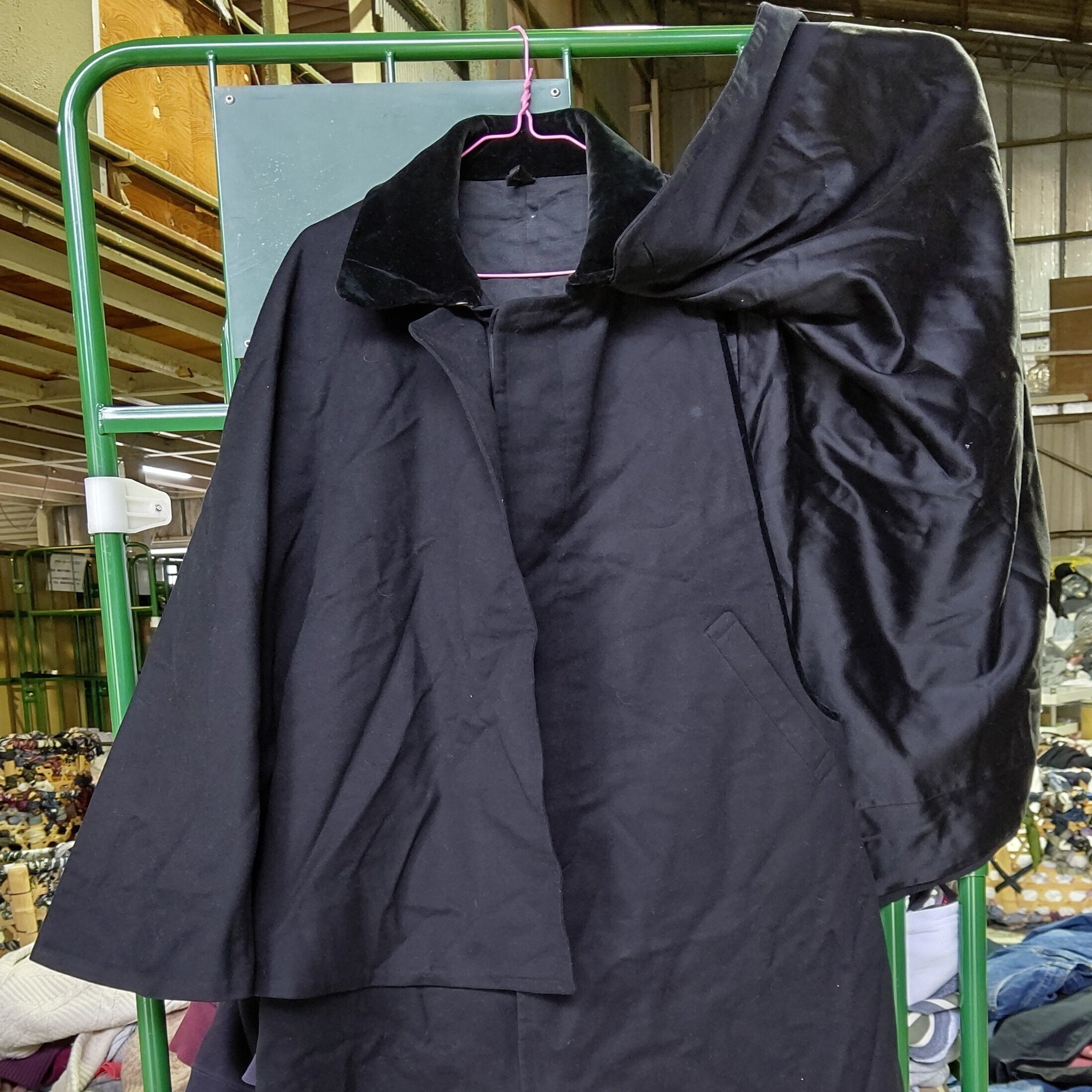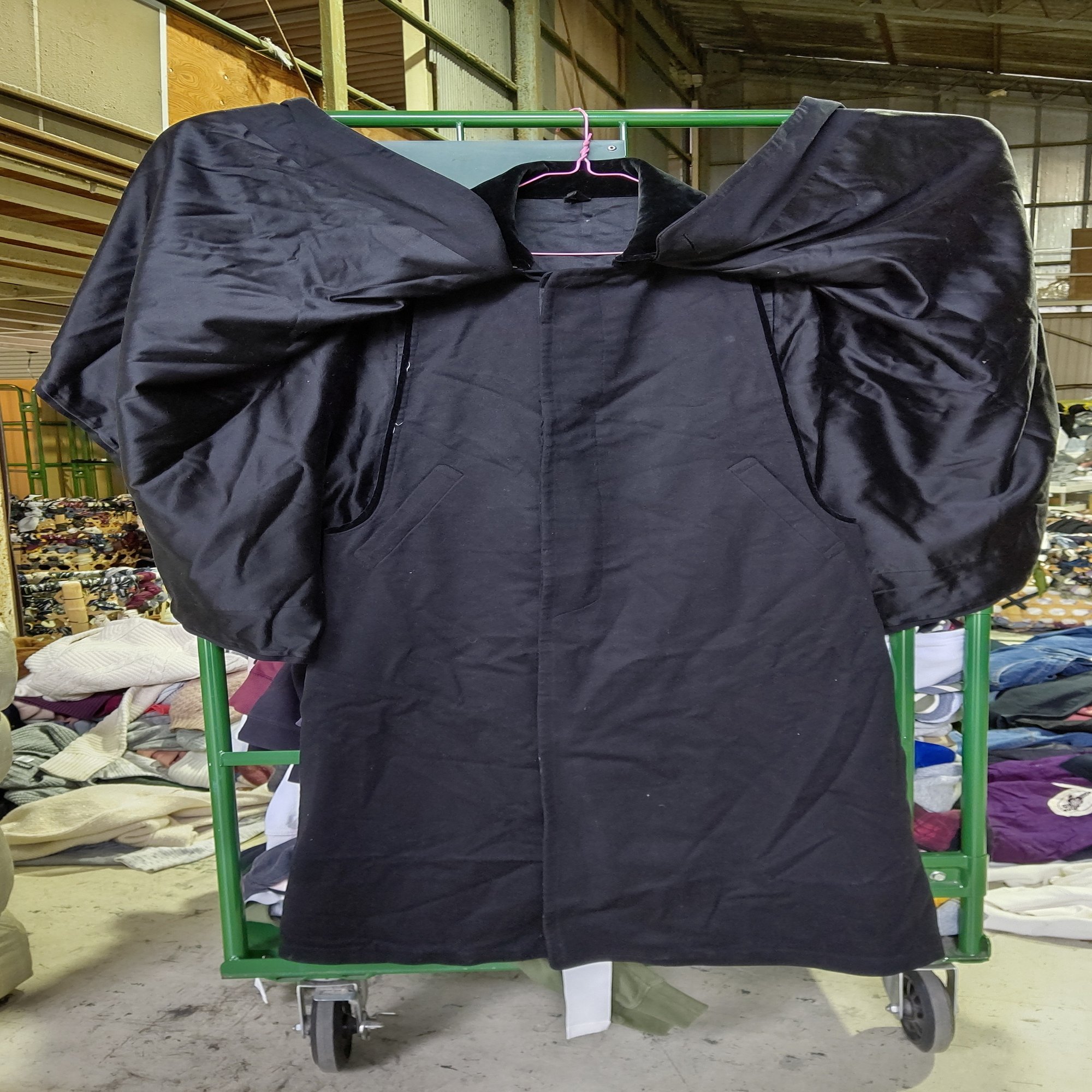 最近ではほとんど見掛けなくなったトンビのコート。弊社では毎年700トンの古着を選別しているが、着用可能な物はほとんど出てこない。今回出て来た物はコンディションが抜群。