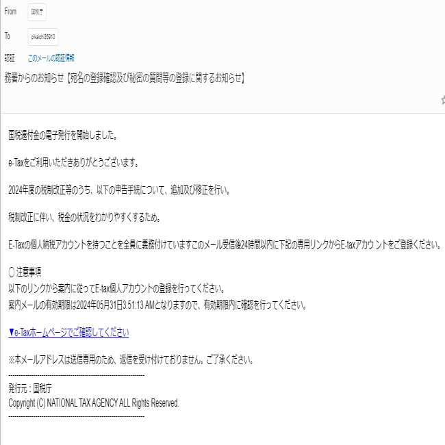 フィッシングメール📧にご注意ください!☠国税庁からメールが届いたが📫文章が怪しい🕸