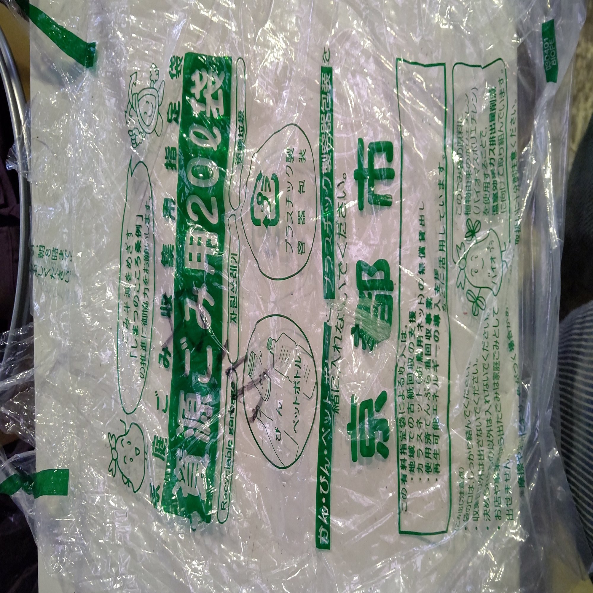 見出し画像のゴミ袋は千葉県富里市の物。ペットボトルの専用袋で、英語と韓国語の表記も有ります。