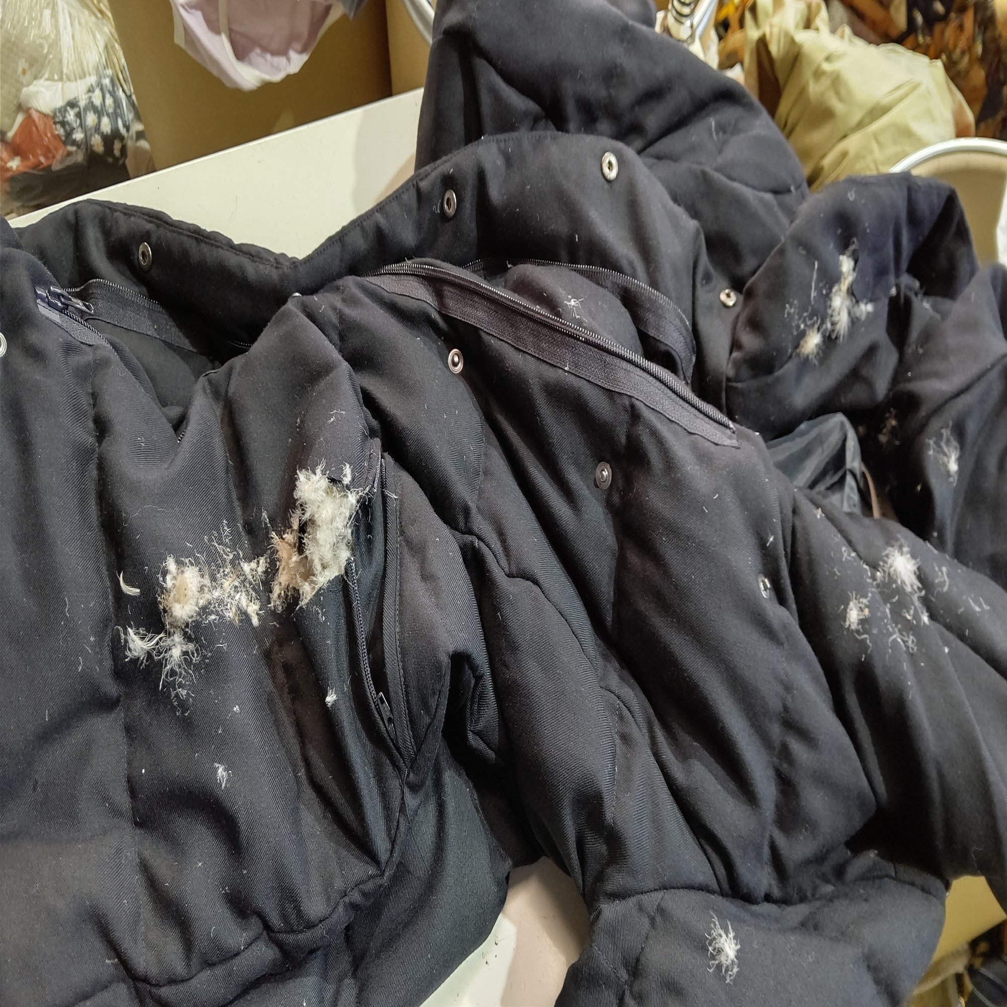 ダウンは羽毛メーカーさんで洗浄してリユースされるのですが、裂け目から飛び散った羽毛は回収することが出来ません。