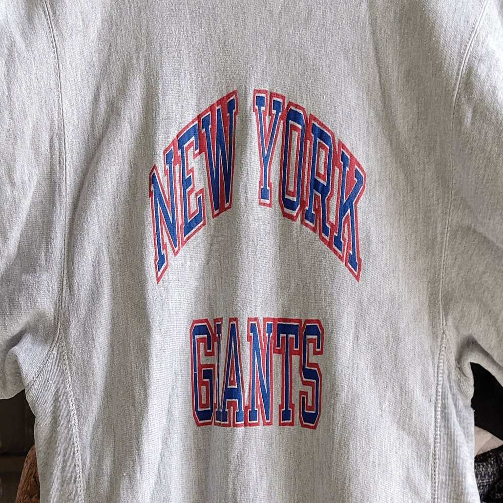 胸には、『ニューヨーク・ジャイアンツ(New York Giants)、アメリカ合衆国ニュージャージー州イーストラザフォードに本拠地をおくアメリカンフットボールのプロフェッショナル・リーグNFLチーム』のロゴ入り。