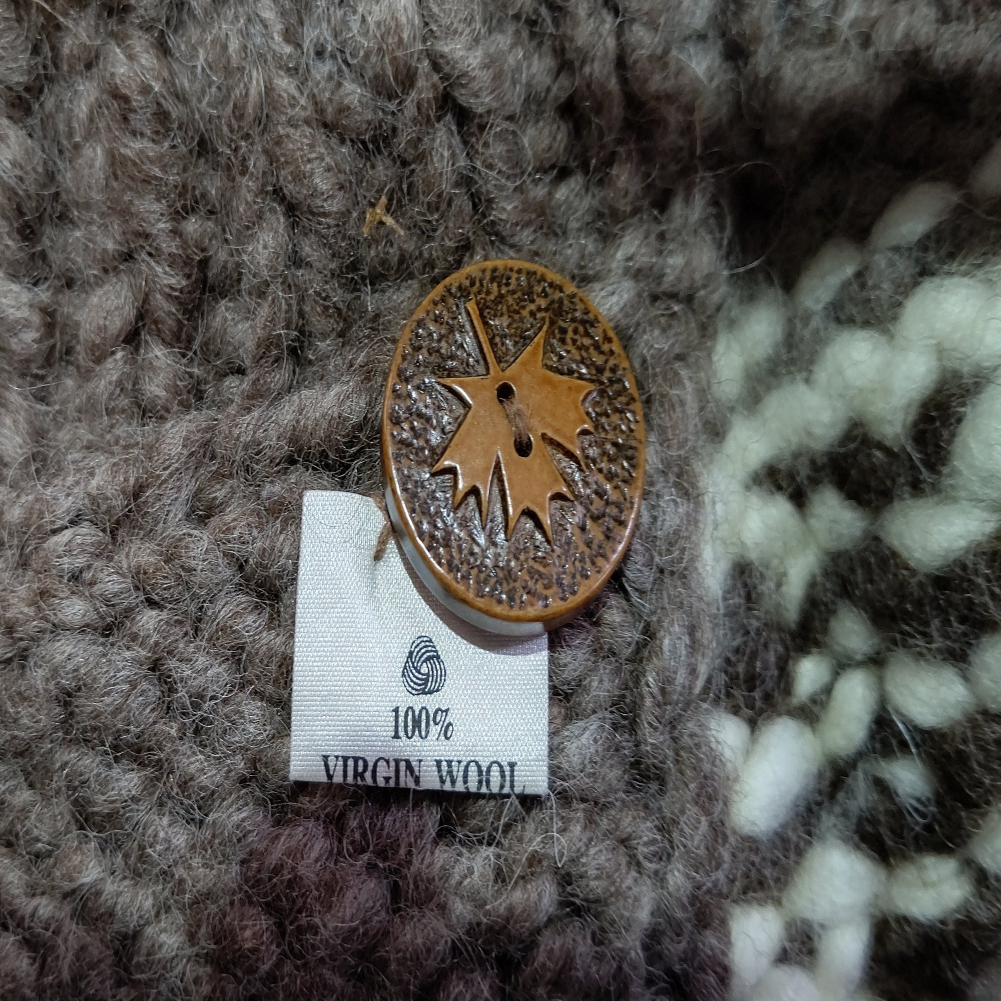 バージンウール100%、カナダの国旗と同じ🍁メイプルリーフ柄のボタン。