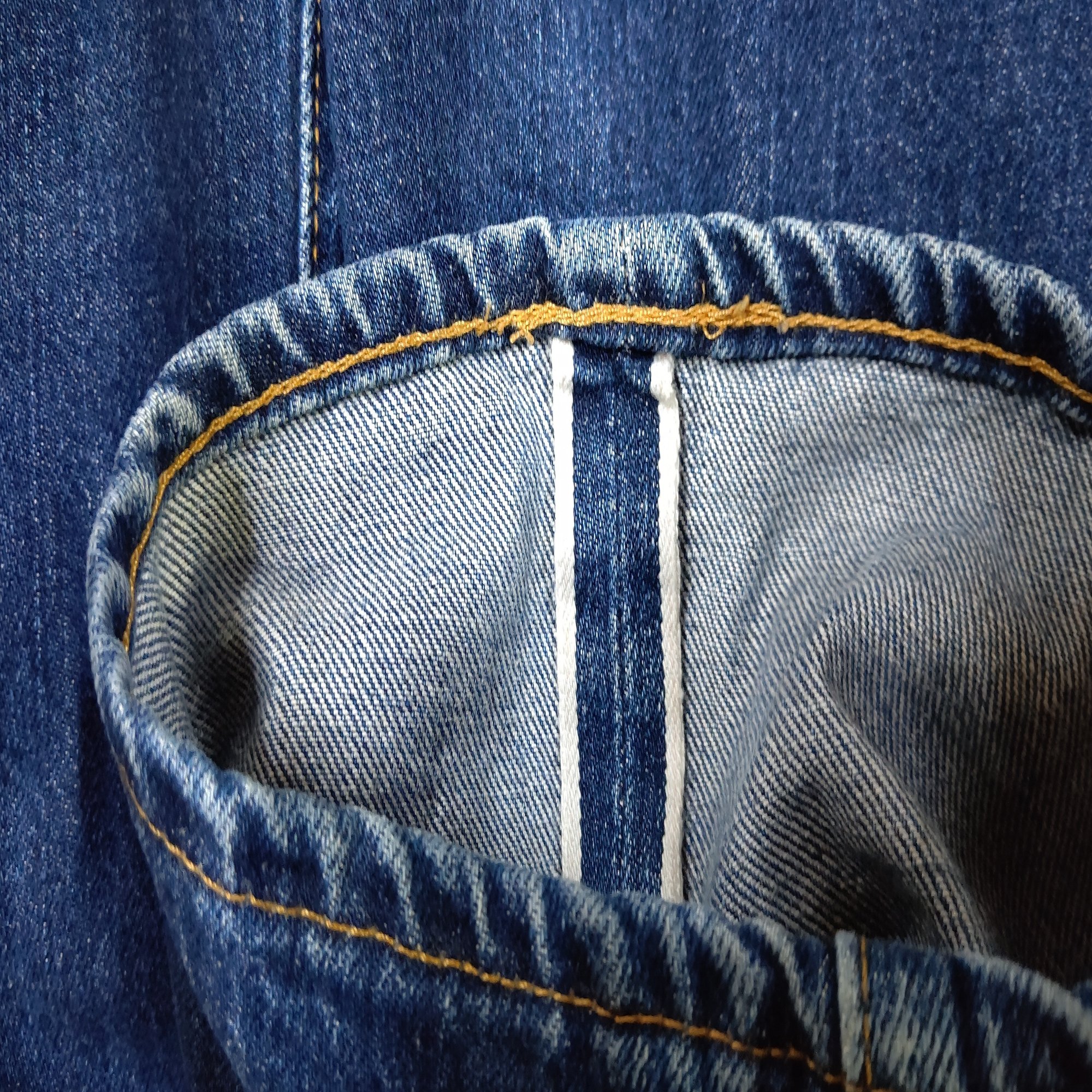裾はオリジナルのチェーンステッチ、赤耳付き。