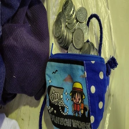 いつものように古着の選別作業をしていたら、子供服と一緒に👒ルフィ?と👑宝箱がデザインされた小さなポーチが出て来た。中を開けてみると沢山のお宝💰✨が入っていた!