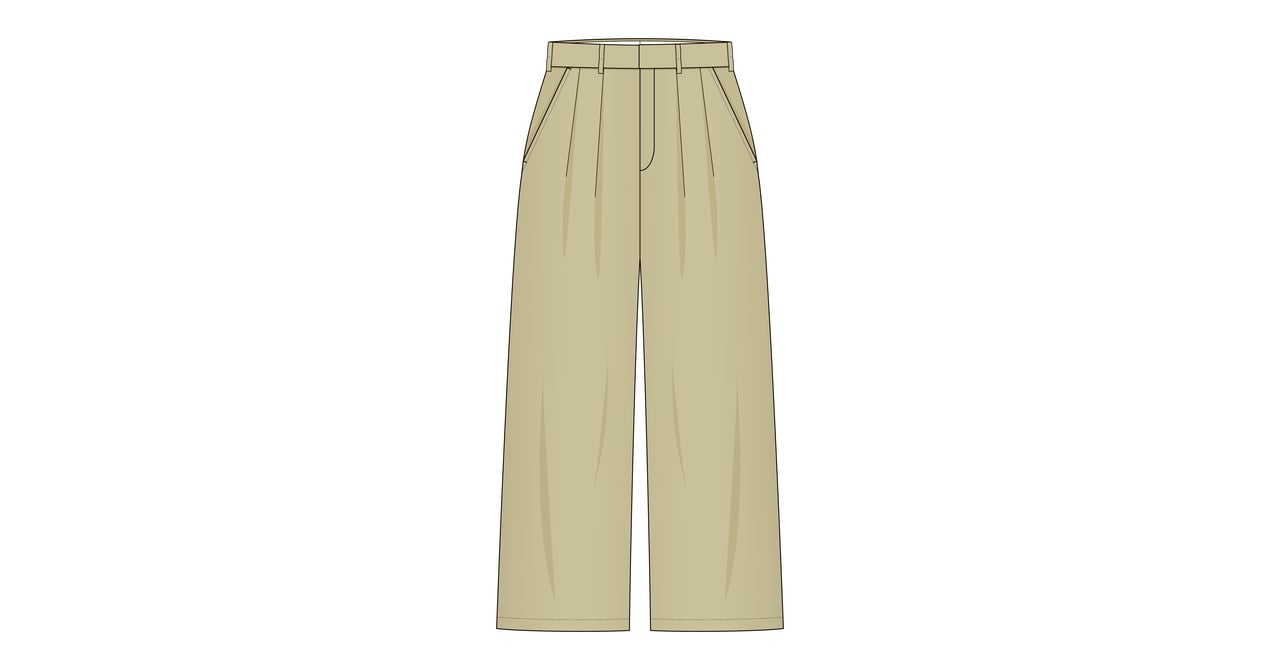 ベルトループが特徴的で、左右に深いタックが入っている。