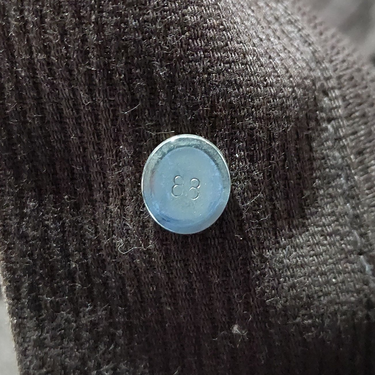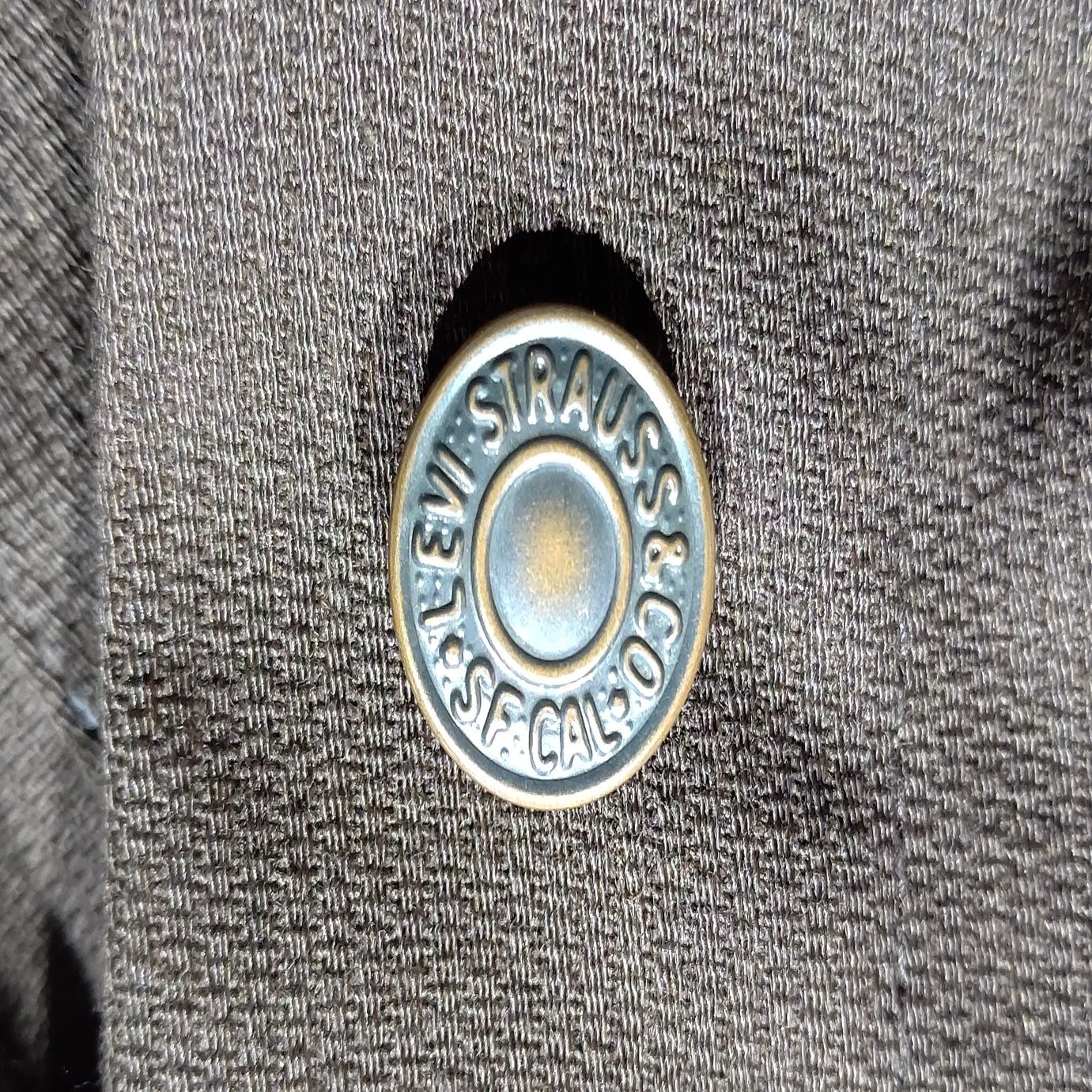 ボタンの特徴は1975年で、タブの特徴が1965年以前だ。サードモデルなら1966年まで。はっきりした年代の特定は難しいが、黒タブのBig”E”均等Vの在庫が沢山あって1975年頃まで使用されていたとしたら、1975年頃の物だろうか🤔🤔🤔