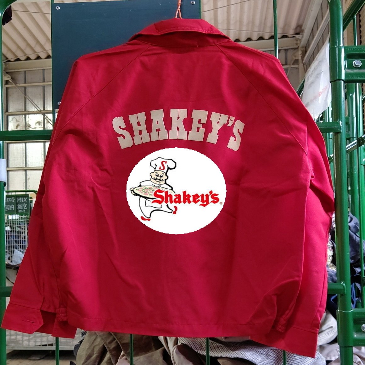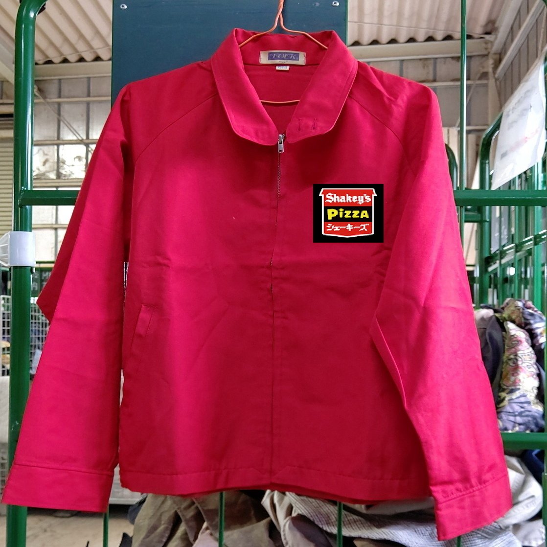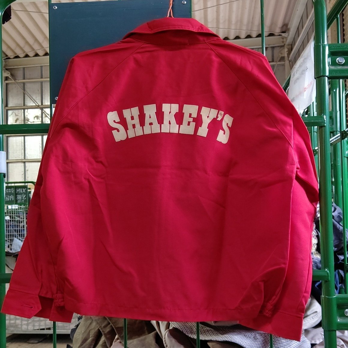 背中にShakey'sのフロッキープリントロゴ入りの、真っ赤なスイングトップ。多分スタッフ用の物だと思います。
