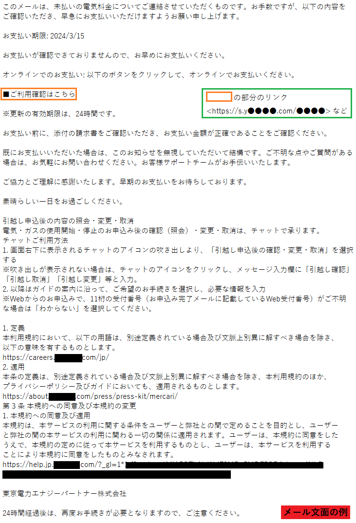 【重要なお知らせ】未払いの電気料金についてご連絡させていただくものです。お客様のお支払い方法が承認されません